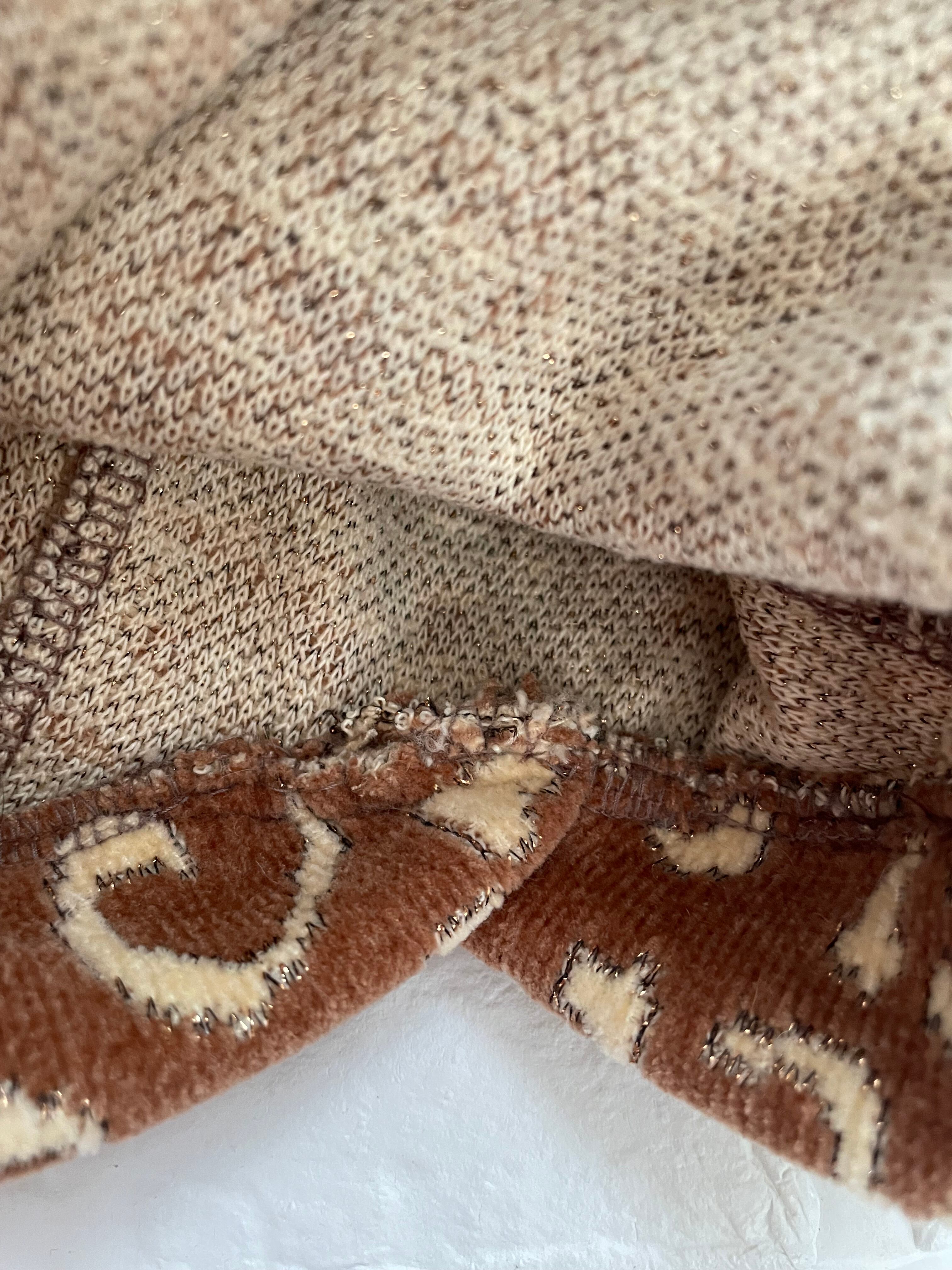 ベロア調の生地に、金色の糸でがレオパード柄の周りを囲んであり、高級感溢れる珍しいレオパード柄のニット生地です。
